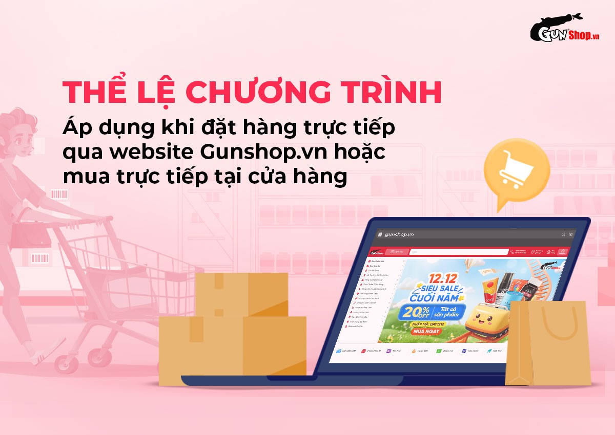 Hòa mình vào không khí cuối năm, Gunshop gửi tặng bạn deal giảm 20% cho tất cả sản phẩm. Áp dụng duy nhất 12/12. Nhanh tay chốt đơn đừng bỏ lỡ nhé!